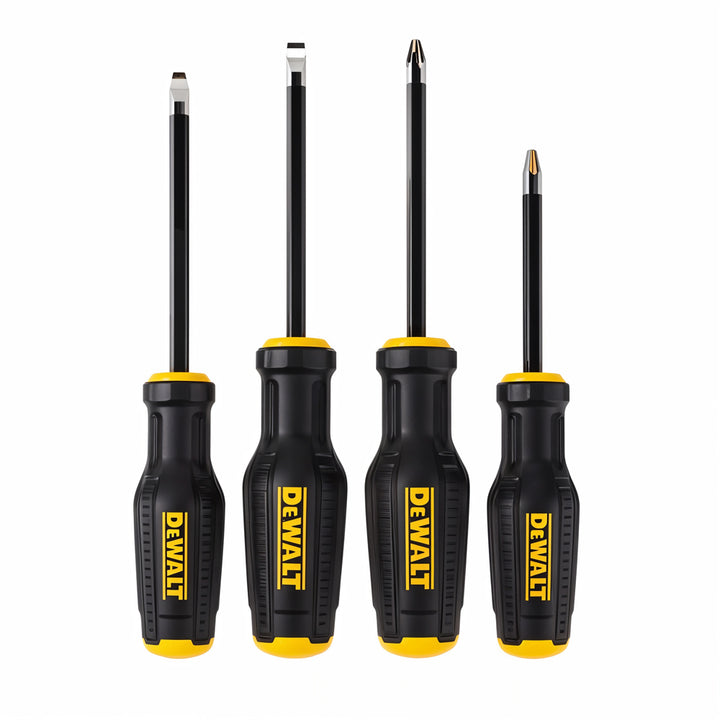 Tighten and loosen screws using this durable TOUGHSERIES™ Screwdriver Set. The Screwdrivers are engineered to weather the elements with improved corrosion resistance by 10X standard levels*. Each hand tool features a black chrome finish, a nickel-coated tip for professional-grade durability, and bend-resistant S2 steel bar construction. They are built with MAX FIT® tips that are designed to reduce slippage and stripping to provide better contact with fasteners. The soft, bi-material handle offers a low-strain grip for comfort and high torque.