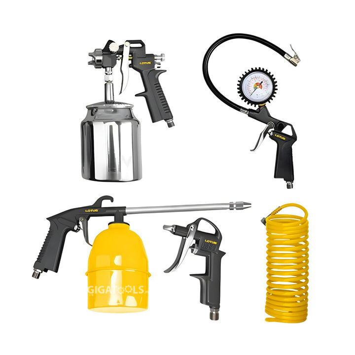 Upgrade your automotive and industrial projects with the Lotus LTMT500ATX 5-Piece Air Tool Set, a versatile and reliable kit designed for efficiency and durability. This all-in-one solution delivers professional-grade performance for painting, cleaning, inflating, and more, making it an essential addition to any workshop or garage.