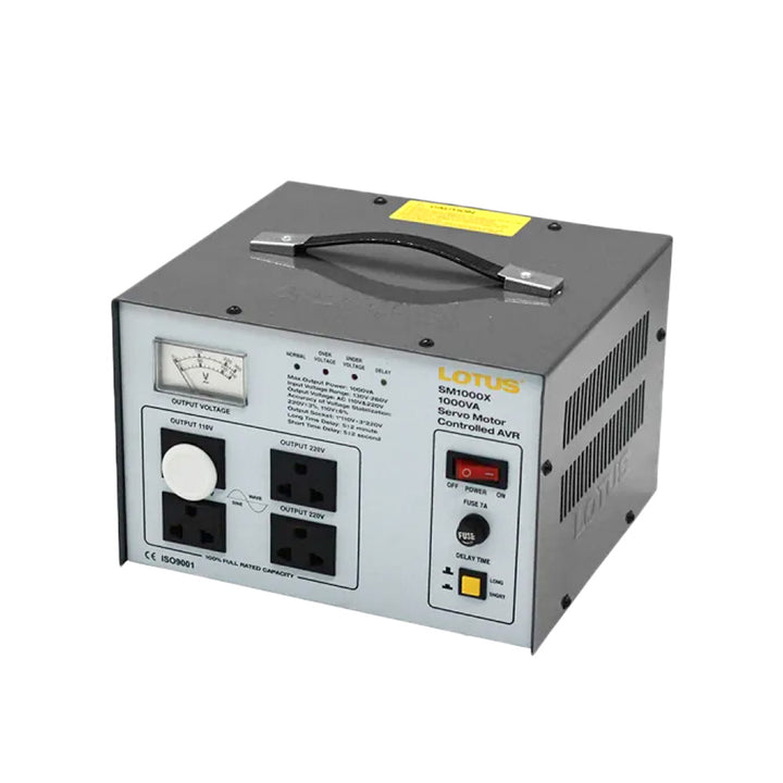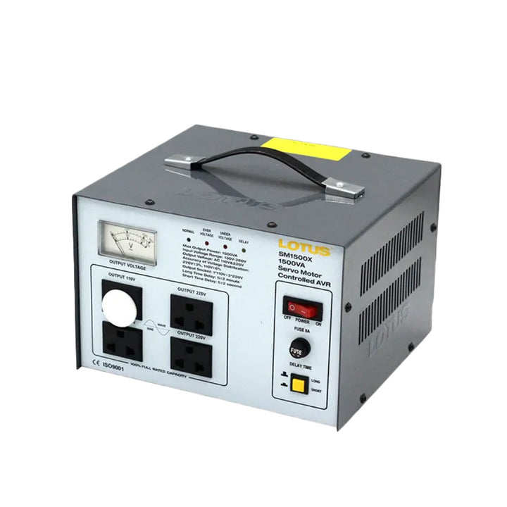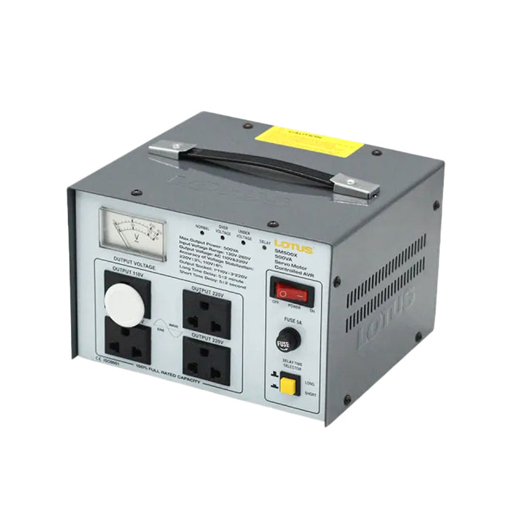 SPECIFICATIONS: Input Voltage Range 130V - 260V Output Voltage AC 110V & 220V Accuracy of Voltage Stabilization 220V±3%, 100V±6% Output Socket 1 x 100V + 3 x 220V Long Time Delay...