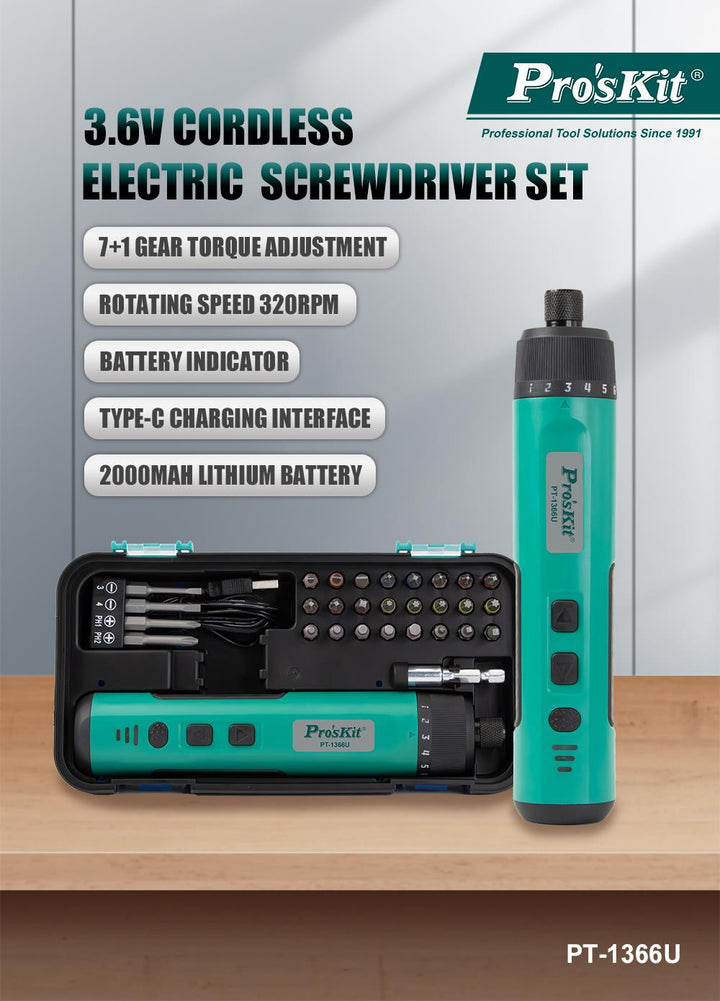 Pro'sKit Cordless Screwdriver Set, 3.6V (PT-1366U)