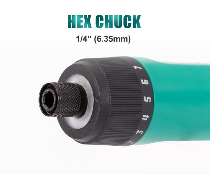 - Quick-Release Bit Holder: Features a 1/4″ (6.35mm) hexagonal quick-release bit holder for easy and secure bit changes.