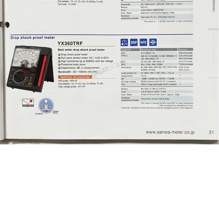 HIGHLIGHTS: The YX360TRF is a taut-band type meter designed for low-voltage circuit measurements. It can measure DCV, DCA, AC, resistance, capacitance(10uF), Load line current, Signal power in dB as well as high DC...