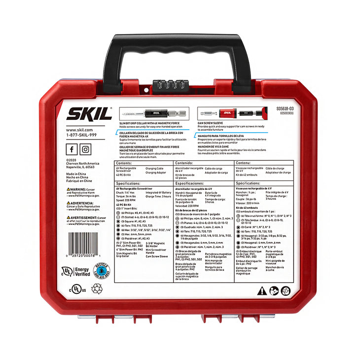 | SKIL SD5618-03 Cordless Rechargeable 4V Screwdriver with 42 PC Bit Kit | |