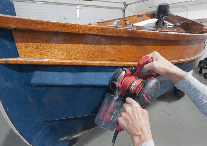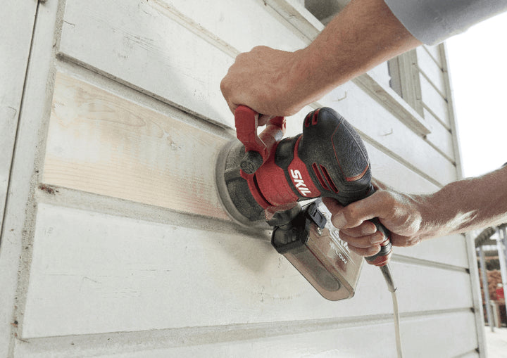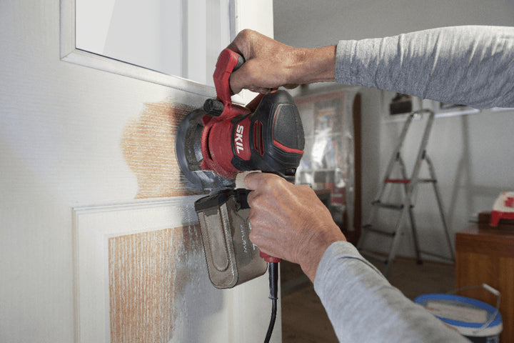 The powerful 400W SKIL 2117 random orbital sander is your ideal partner for sanding both flat and curved surfaces. With its efficient eccentric sanding movements, it’s ideal for both fine finishing and large-scale surface removal. And thanks to the pre-select variable-speed function the speed can be matched to the job. This tool has a patented ‘X-Flow’ dust-collection system, that separates dust from air without a filter. The main advantage is that there's no filter that can get clogged, which means that the dust suction stays powerful over time. This enables cleaner working. But if you prefer to attach your vacuum cleaner, you can also use the vacuum cleaner adapter supplied. The additional adjustable handle offers optimum control during the job and a counterweight balancing system ‘VRS’ improves the control even more by reducing vibrations. The SKIL 2117 is supplied with 15 hook-and-loop sanding sheets, an adjustable handle, an ‘X-Flow’ dust box and a vacuum cleaner adapter.
