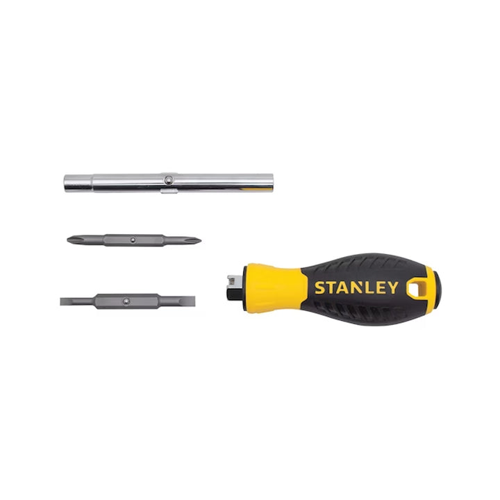 HIGHLIGHTS: Save space in your toolbox with the STANLEY® 6-Way Quick Change Interchangeable Screwdriver. This versatile screwdriver includes standard and Phillips® tips and two nut drivers. The handle is ergonomically designed...