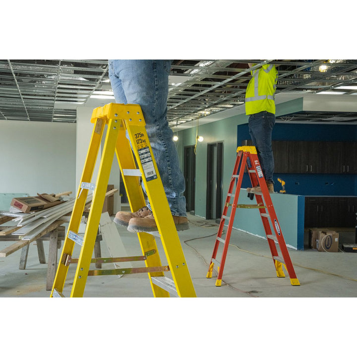 Step up your project game with the Werner Fiberglass Step Ladder A-Type Orange Series, a top-tier product manufactured with pride in the USA. Engineered for heavy-duty performance, this ladder supports a 300 lbs load capacity, meeting ANSI Type IA standards, making it the go-to choice for professional contractors, electricians, and serious DIY enthusiasts. Its non-conductive fiberglass rails, rated for up to 30,000 volts, provide unmatched safety when working around electrical hazards, ensuring you can focus on the task at hand with confidence.