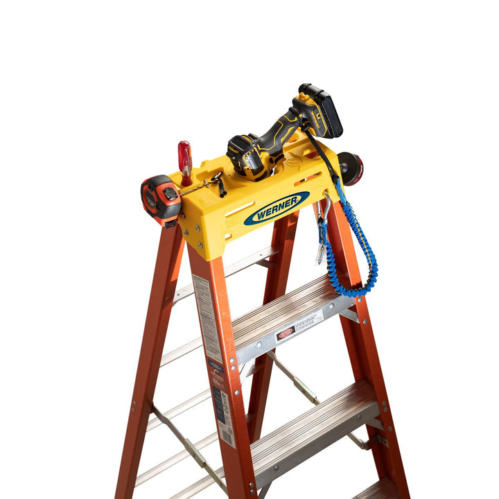 Drawing inspiration from the 6200 Series (e.g., https://www.wernerco.com/us/products/ladders/step-ladders/6200Series/6204), the Orange Series features the advanced HolsterTop® Lock-In System. This customizable top allows you to securely store tools, materials, and accessories, boosting efficiency and keeping your workspace organized. The slip-resistant Traction-Tred® steps offer a stable and comfortable footing, reinforced by the EDGE® bracing that enhances the ladder’s frame strength and extends its lifespan. The external Pinch-Proof™ spreaders add an additional safety layer by preventing pinch injuries during setup and storage, a critical feature for high-traffic job sites.