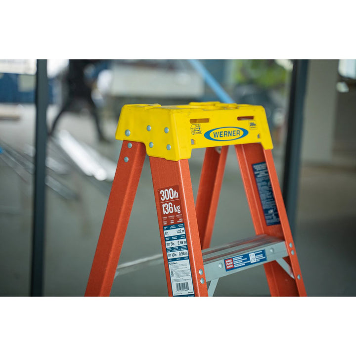 Werner Fiberglass Step Ladder A-Type, Orange, 300lbs Capacity (Made in USA)